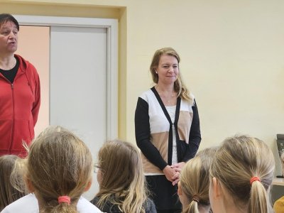 Michaela Fišarová, oceňovaná autorka knih pro děti a mládež, vyprávěla o své spisovatelské práci, hledání námětů i o tom, jak ji ovlivnilo působení ve škole. Popsala, že své příběhy často čerpá z běžného života kolem sebe a že témata jejích knih — vztahy, přátelství, odvaha nebo každodenní starosti — jsou dětem blízká a aktuální. Její vyprávění bylo otevřené, laskavé a srozumitelné.