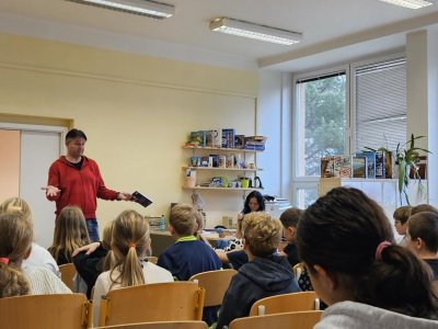 Na naší škole jsme měli jedinečnou možnost přivítat spisovatelku Michaelu Fišarovou a herce Miroslava Reila, kteří společně pořádají besedy pro děti i dospělé a propojují literaturu s divadelním uměním. Setkání se proměnilo ve velmi inspirativní a živou událost, která zaujala všechny zúčastněné.