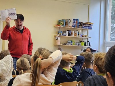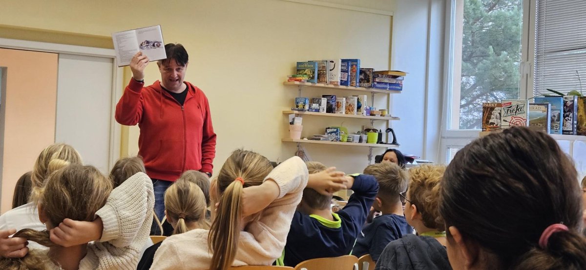Významnou součástí besedy byl také herec Miroslav Reil, který doprovodil povídání dramatickým přednesem ukázek z autorčiných knih. Jeho práce s hlasem, mimikou i pohybem dodala příběhům výraznou energii a atmosféru. Děti byly do dění zcela vtažené, reagovaly na jednotlivé situace a se zaujetím sledovaly, jak se literární postavy před nimi „zjevují“ prostřednictvím hereckého projevu.