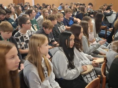 V úterý 11. 11. jsme si společně se spolužáky z druhého stupně zabubnovali v KD Březnice. Akce byla velmi vydařená, nejdřív jsme si vyzkoušeli hru na Boomwhackers (plasotvé barevné tyče s rozdílnými tóny). Poté každý dostal vlastní buben, či jiný bicí nástroj a snažili jsme se držet rytmus, což se nám docela dařilo.