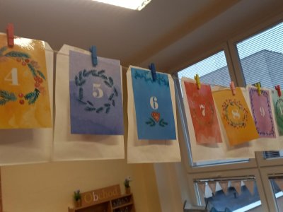 Plníme úkoly v adventním kalendáři. Učíme se naslouchat si, tolerovat jeden druhého a hledat kladné vlastnosti na sobě i na svých spolužácích.