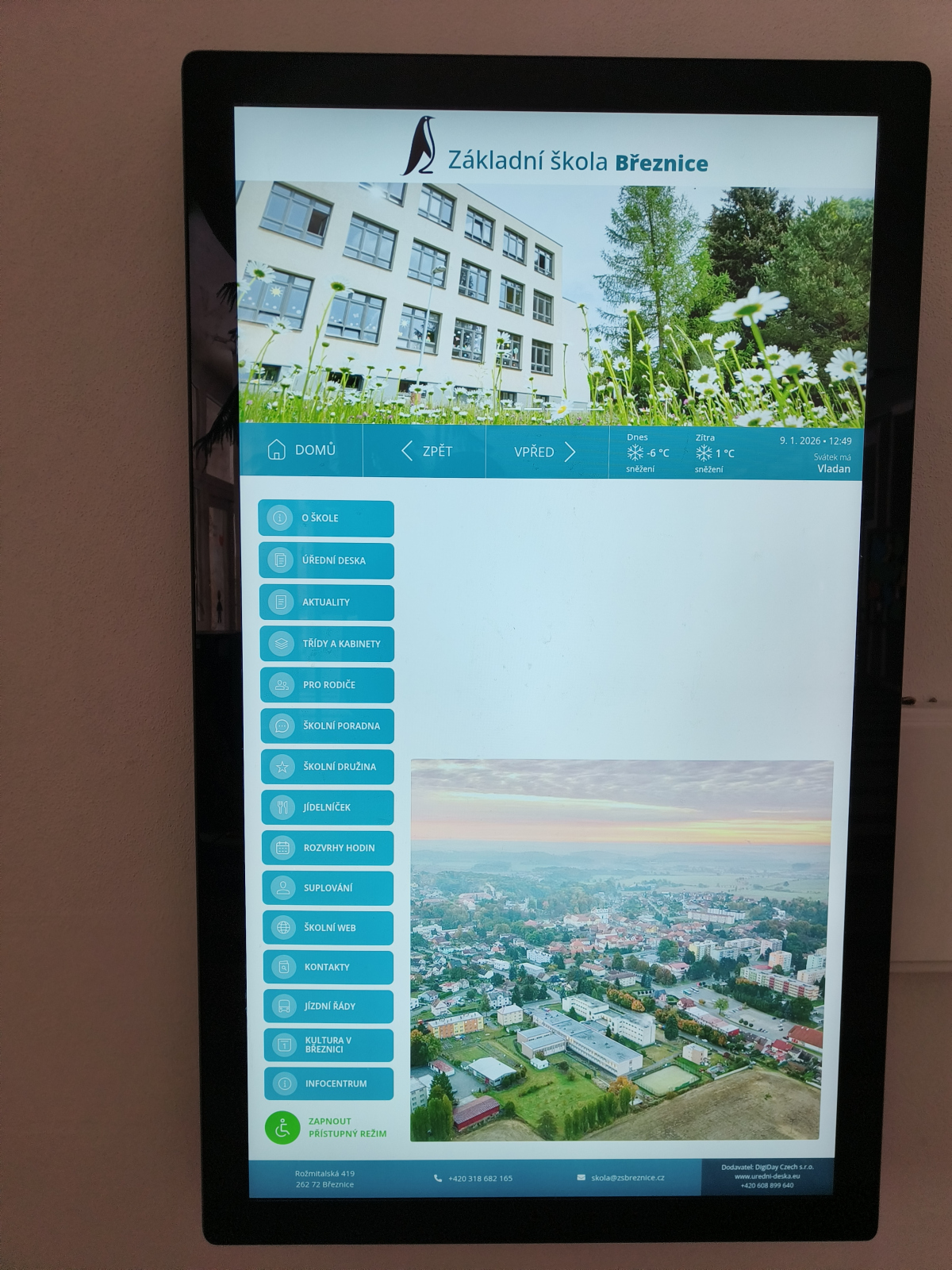 Pro umístění panelů byly vytipovány prostory u vrátnice a současně ve vestibulu, kde dochází k největšímu pohybu a soustředění osob.